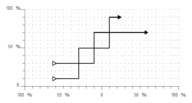 IN wird angesagt, wenn beide Drachen horizontal in einem Abstand von etwa 20% übereinander fliegen, wobei der untere Drachen etwa ^10 und beide noch nicht <60 erreicht haben. Das Timing der Richtungsänderungen soll so angelegt werden, daß beide Drachen gleichzeitig im ersten Quadrat vertikal und im zweiten Quadrat horizontal fliegen. Die Größe der Quadrate beträgt etwa 20%. OUT wird angesagt, wenn der obere Drachen auf seiner letzten Horizontalen mindestens eine Strecke von 10% zurückgelegt hat.