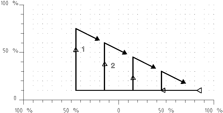Each kite in turn (kite 1 first, at left most position) turns up sharply.
