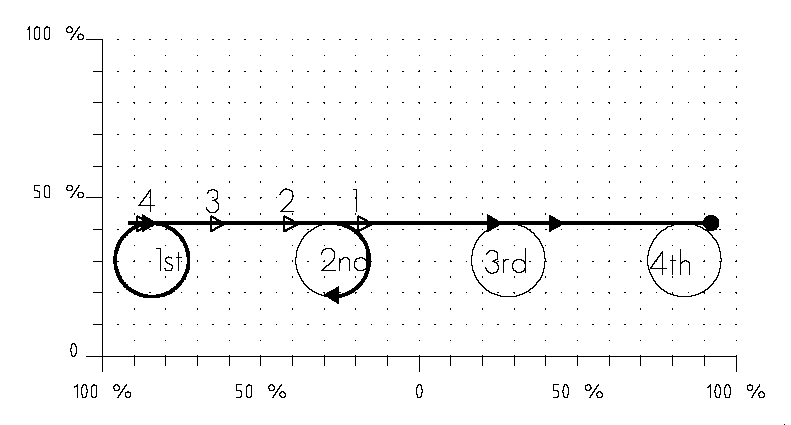 (For a three person team spacing and diameter of the loops will be about 35%, and the middle loop will be at center window. If a three person team is using very large kites, they can raise the horizontal line by 1 or 2 %. Touching the ground is not requested. For a six person team spacing and diameter will be about 14%)